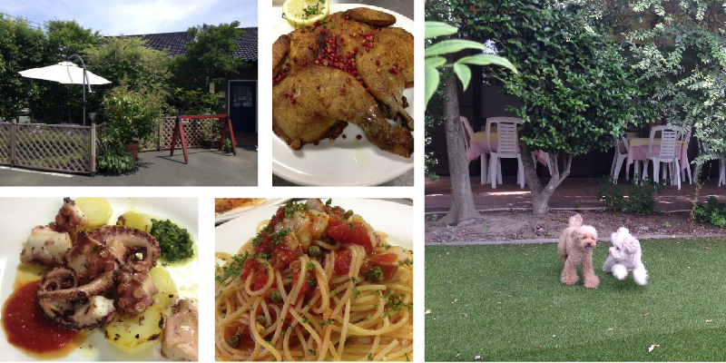 小さなイタリア料理店です。 オーソドックスでシンプルな料理を沢山用意しています。 テラス席は柵で囲い、犬連れのお客様が利用しやすい様になっています。 ご来店の際には予約をお願いします。