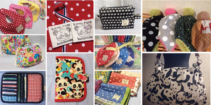 はじめまして! 「FLoweR」の「L」のLittleField*handmade*です。 大好きなパンダちゃん柄、ドット柄、ぞうさん柄などの生地を使ってスタイや布小物、帽子などをお作りしています。 スタイの種類は3タイプ。手で触ってお好きな肌触りのものをお選びくださぃ。 遠州バザールでお待ちしてます♪