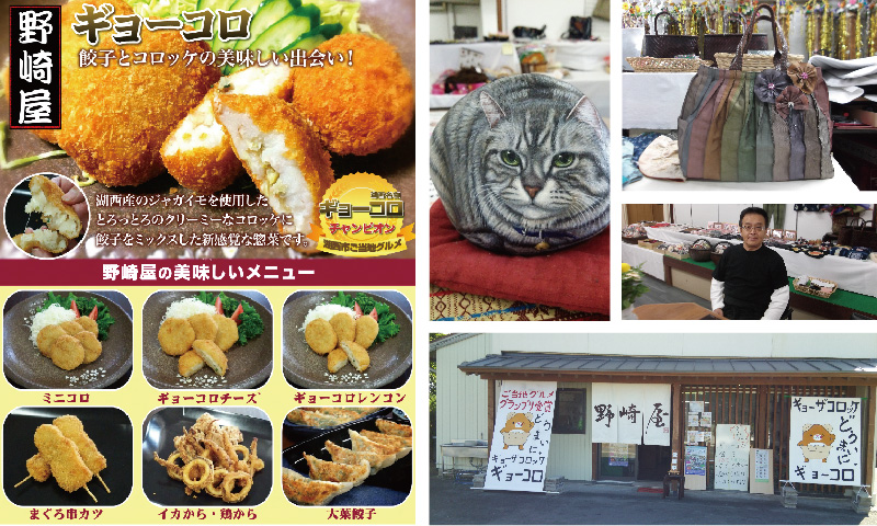 当店は静岡県と愛知県の県境、湖西市多米峠入口でご当地グルメコンテストグランプリを受賞。餃子の入ったコロッケ(ギョーコロ)発祥のお店です。また、畳や畳のヘリを使ってバックや小物など手づくり販売しているお店です。