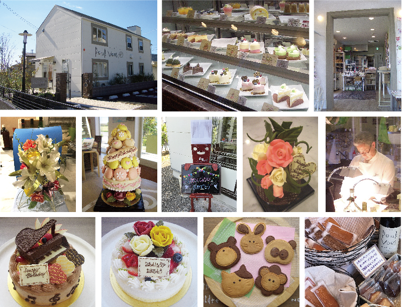 国産小麦や厳選された生クリーム、地元産の旬の果物など素材にこだわり、ひとつひとつ丁寧に仕上げています。 バースデーや記念日のケーキなどは、お客さま一人ひとりの要望に合わせて作り、 あめ細工やチョコレート細工、アイシングクッキーなども承っています。