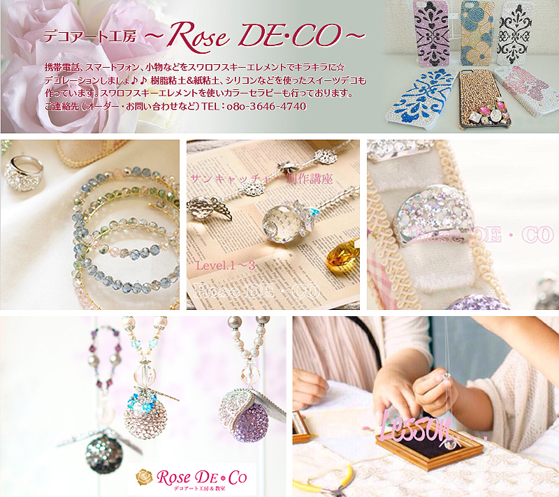 「癒しのスワロフスキーデコレーション」をテーマに、スワロフスキー小物の作成・販売、資格取得教室をしております、ROSE DE・COです。見ているだけで癒されるスワロフスキーの輝きをワークショップで作りながら楽しみませんか?